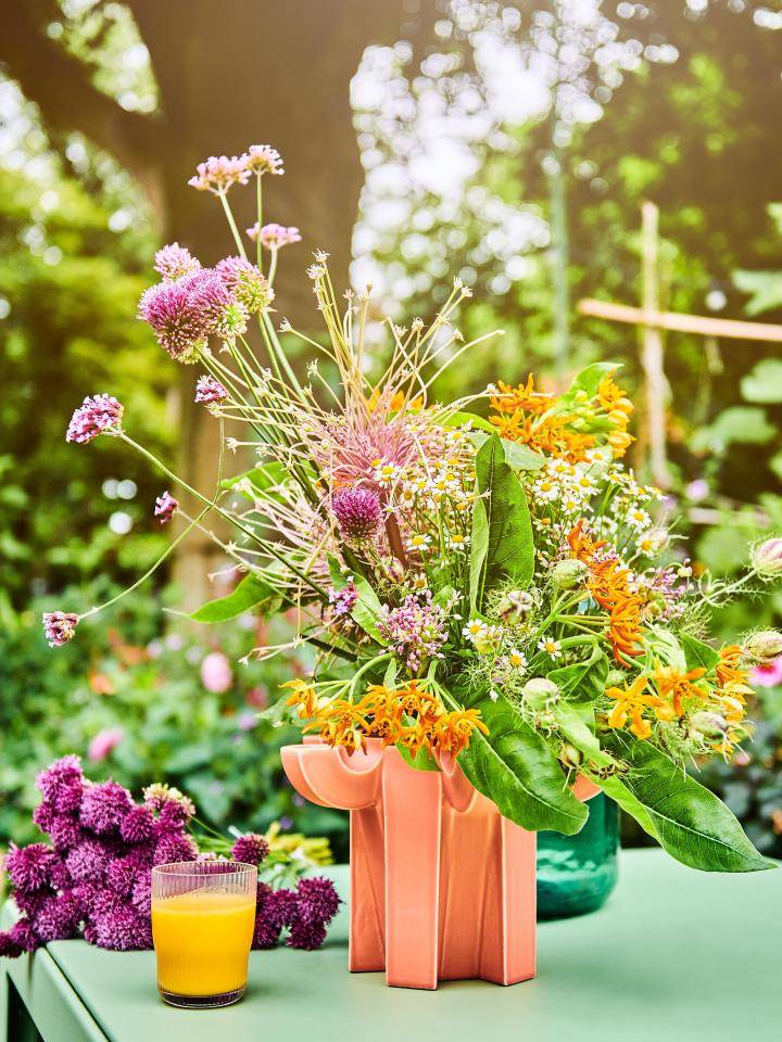Créez un véritable tableau floral avec ce bouquet débordant de gaieté, inspiré des bordures fleuries de votre terrasse ou de votre jardin. Il apportera une touche d’insouciance autour de la table, dans l’esprit de la tendance « Frais & coloré ».